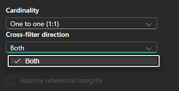 But what if I manually set the Cardinality to Many-to-one? Now I can still have it go both ways but I’m suddenly able to deselect “Apply security filter in both directions”. Just make sure that the many-side of the relationship is in the “RLS Filter”-table.