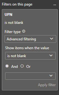Because now we can set the UPN field as a filter on the current page! I’m setting it to “is not blank”.